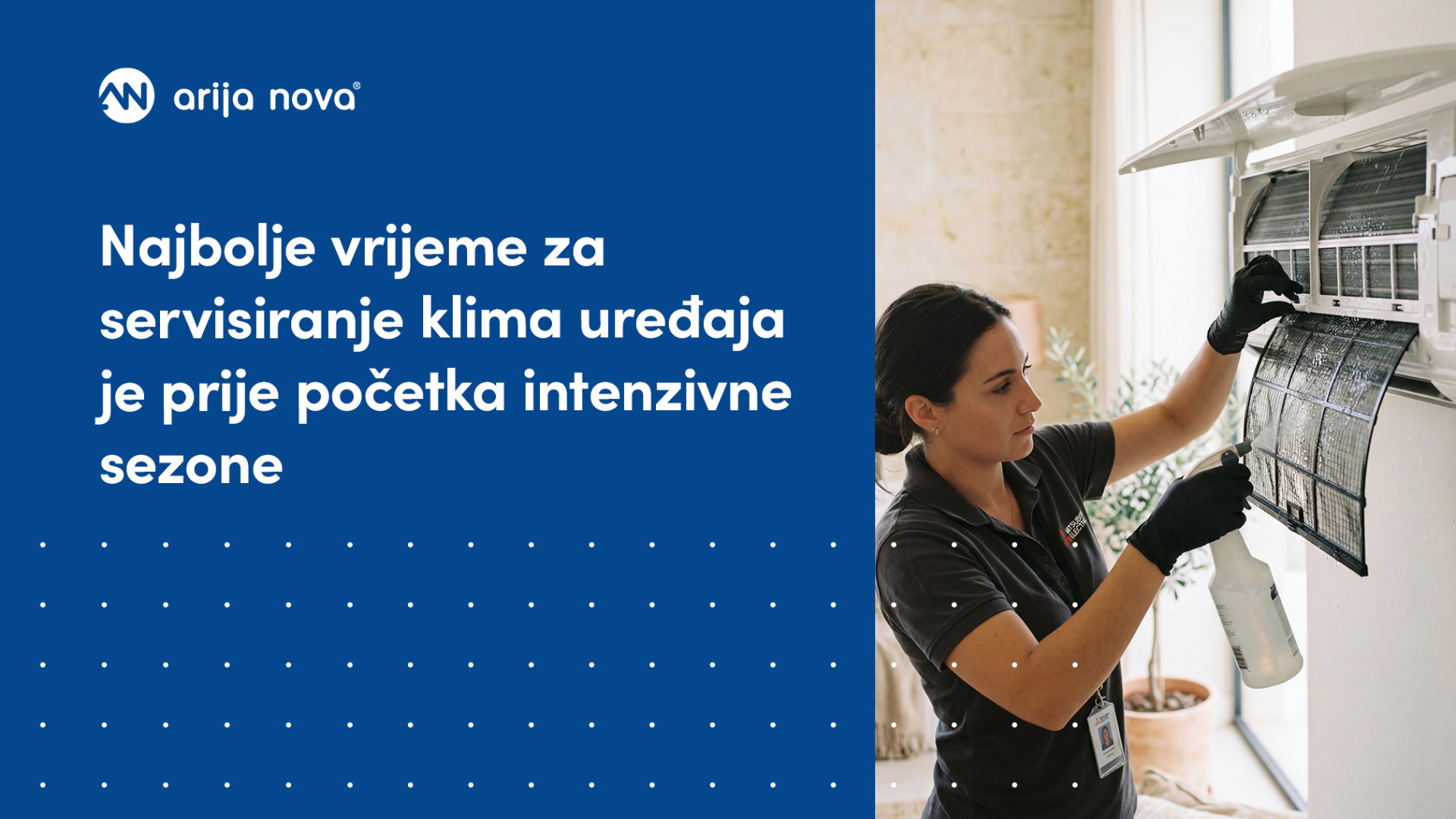 Ako želite siguran i profesionalan pregled, obratite se iskusnom timu koji se više od 20 godina bavi klimatizacijom, montažom i održavanjem sustava. Arija Nova svojim korisnicima pruža stručnu podršku, godišnje održavanje i savjete za pravilno korištenje uređaja kako bi oprema ostala učinkovita i dugotrajna.