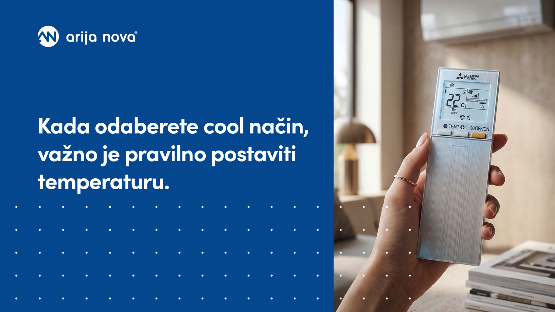 Za ugodan boravak obično je dovoljno postaviti temperaturu nekoliko stupnjeva niže od one u prostoriji. Tako klima radi stabilnije, a razlika između vanjskih i unutarnjih uvjeta ostaje ugodna za organizam.